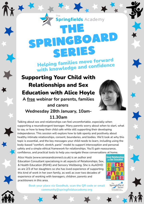Talking about sex and relationships can feel uncomfortable, especially when supporting a neurodivergent teenager. Many parents worry about when to start, what to say, or how to keep their child safe while still supporting their developing independence. This session will explore how to talk openly and positively about healthy intimate relationships, consent, boundaries, and bodies. We’ll look at why this topic is essential, and the key messages your child needs to learn, including using the body-based “comfort, stretch, panic” model to support interoception and personal safety and a simple ethical framework for relationships. You’ll gain reassurance, confidence, and practical tools to help you navigate these conversations at home.